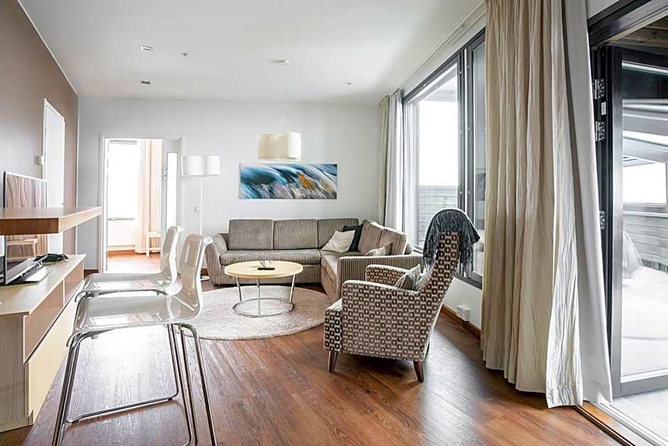 This suite features a sauna. This spacious suite features 1 living room, 2 separate bedrooms and 2 bathrooms with a shower and bathrobes. The suite has parquet floors, a seating area with a flat-screen TV with cable channels, a mini-bar, a wardrobe, as well as a safe deposit box. The unit has 5 beds.
